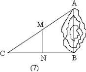7.初三(1)班数学兴趣小组到野外实习测量:如图,AB两点被池塘隔开,在AB外选一点C,连结AC和BC,并分别找出AC和BC的中点M、N,如果测得MN=15米,那么AB=________米。