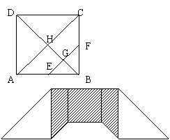 的正方形ABCD厚纸板,按下面的做法做一套七巧板,作对角线AC分别取AB,BC的中点E,F,连接EF,连接BD,交EF于G,交AC于H,将正方形ABCD沿画出的线剪开,现把它们拼成一座桥,如图所示,这座桥阴影部分的面积是( )