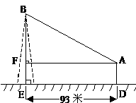 18.(8)如图,在离铁塔93米的A处,用测角器测得塔顶的仰角为∠BAF,已知测角器高AD=1.55米,若∠BAF=30°,求铁塔高BE。