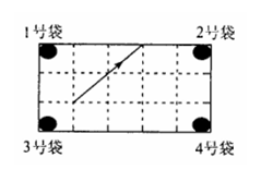 如图,是一个改造后的台球桌面的示意图,图中四个角上的阴影部分分别表示四个入球孔,如果一个球按图中所示的方向被击中(球可以经过多次反射),那么该球最后将落入的球袋是 ( )