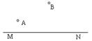 如图,已知直线MN与MN同侧两点A、B求作:点P,使点P在MN上,且∠APM=∠BPN ![]()