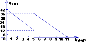 25、某机动车出发前油箱内有42升油,行驶若干小时后,途中在加油站加油若干升。油箱中余油量Q(升)与行驶时间t(小时)之间的函数关系如图所示,根据下图回答问题:
