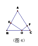 ABC是等边三角形,点O是BC上任意一点,OE、OF分别与两边垂直,等边三角形的高为1,则OE+OF的值为( ).