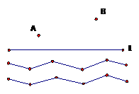 18、(5分)如图,L为汀江河的南岸线,一天傍晚某牧童在A处放牛,欲将牛牵到河边饮水后再回到家B处,牧童想以最短的路程回家。请你在图中画出牛饮水的位置。(保留痕迹)