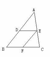 14、如图:在⊿ABC中,点D、E、F分别AB、AC、BC上,DE∥BC,EF∥AB,且F是BC的中点,试说明DE =CF