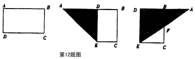 8.如果一个矩形较短的边长为5cm.两条对角线所夹的角为60°,则这个矩形的面积是_____cm2. 9.四边形ABCD的对角线相交于点O,在下列条件中,不能判别它是矩形的是 A. AB=CD,AD=BC.∠BAD=90° B.AO=CO,BO=CO.AC=BD C. ∠BAD=∠ABC=90°,∠BCD+∠ADC=180° D. ∠BAD=∠BCD,∠ABC=∠ADC=90° 10. 已知矩形的一条对角线与一边的夹角是40°,则两条对角线所成锐角的度数为( ) A. 50° B. 60° C. 70° D. 80° 11.已知一边长为acm的矩形面积与一个腰长为acm的等腰直角三角形的面积相等, 则矩形的周长为( ) A.2acm B. 3acm C. 4acm D.5acm 12. 如图,有一个矩形纸片ABCD,AB=10,AD=6,将纸片折叠,使AD边落在AB边上,折痕为AE,再将△AED的DE为折痕向右折叠,AE与BC交于点F,则△CEF的面积为( )