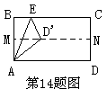 14. 如图,将矩形ABCD纸片对折,设折痕为MN,再把B点叠在折痕线MN上,若