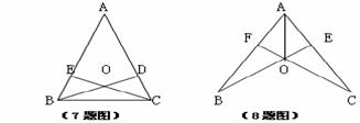 8、如图,AO平分∠BAC,AB=AC,连结BO、CO并延长交AC、AB于点E、F,则图中有( )对全等三角形。