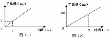 放假了,小明和小丽去蔬菜加工厂社会实践,两人同时工作了一段时间后,休息时小明对小丽说:“我已加工了28千克,你呢?” 小丽思考了一会儿说:“我来考考你.图⑴、图⑵分别表示你和我的工作量与工作时间的关系,你能算出我加工了多少千克吗?”