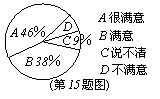 15.某商场为了解本商场的服务质量,随机调查了本商场的100名顾客,调查的结果如图,根据图中给出的信息,这100名顾客中对该商场的服务质量表示不满意的有 人。