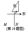 14.如图,一艘轮船向正东方向航行,上午9时测得它在灯塔P的南偏西