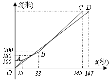 (黄冈2006)如图,在光明中学学生耐力测试比赛中,甲、乙两学生测试的路程S(米)与时间t(秒)之间的函数关系图像分别为折线OABC和线段OD,下列说法正确的是( )