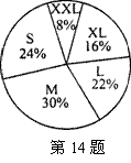 14.右面的扇形图描述了某种品牌服装的S号、M号、L号、XL号、XXL号在一家商场的销售情况.请你为这家商场提出进货建议: .