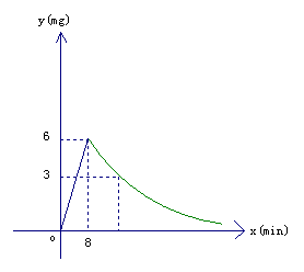 5、为了杀灭空气中的病菌,某学校对教室采用了熏毒法进行消毒,已知药物燃烧时,室内每立方米空气中含药量y(mg)与时间x(min)成正比例;药物燃烧后, y与x成反比例,请根据下图所提供的信息,回答下列问题。