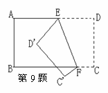 9.如图,把一个长方形纸片沿EF折叠后,点D、C分别在D′、C′位置,若∠EFB=65°,则∠AED′=_________.