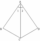 (5分)如图:已知AB⊥BC,AD⊥DC, AB=AD,垂足分别为B、D。求证:∠1=∠2