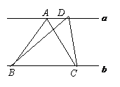 如图,直线a∥b,则ΔABC与ΔDBC 的面积相比较。( )