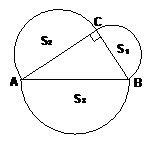 如右图, 在Rt△ABC中,分别以三边为直径向形外作半圆,若三个半圆