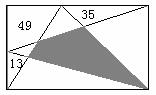 在长方形内画一些直线,已知边上有三块面积分别为13,35,49,图中的数据表示所在的小块面积,则图中的阴影部分的面积为