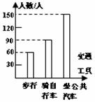D、步行与骑自行车的人数和比坐公共汽车的人数要少.