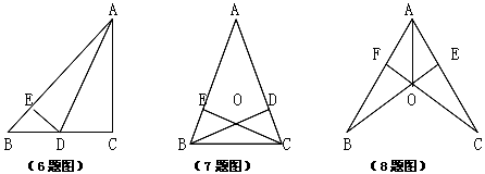 9、如7题图,已知AB=AC,AE=AD,则①△ABD≌△ACE,②△BOE≌△COD,③点O在∠BAC的平分线上,( )