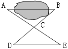 一个可以直接到达A和B的点C,连结AC并延长至E,使CE=AC,连结BC并延长至D,使CD=BC,连结DE,根据△ABC≌△EDC可知,量出DE的长,就是A、B的距离,这里△ABC≌△EDC的依据是( A )