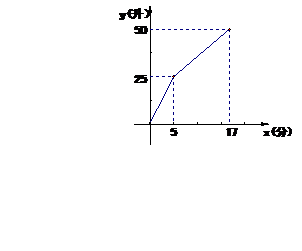 得到时间x(分)与水量y(升)之间的关系如右图所示。