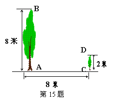 15.如图,有两棵树,一棵高8米,另一棵高2米,两树相距8米,一只小鸟从一棵树的树梢飞到另一棵树的树梢,则它至少要飞行_______米.