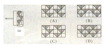 10、 小强用如图 1 所示的胶滚从左到右的方向将图案滚涂到墙上 .下面给出的 4 个图案中 , 符合图示胶滚涂出的图案是 ( )
