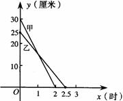 (10分)在一次蜡烛燃烧试验中,甲、乙两根蜡烛燃烧时剩余部分的高度y(厘米)与燃烧时间x(小时)之间的关系如图所示,请根据图象所提供的信息解答下列问题: