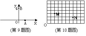 9.如图, 在直角坐标系中, O是原点, A在x轴上, B在y轴上, 点O的坐标是 ,点A 的坐标是 , 点B的坐标是 .