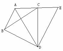 如图,△ABC中,∠BAC=120°,以BC为边向形外作等边△BCD,把△ABD绕着点D按顺时针方向旋转60°到△ECD的位置,若AB=3,AC=2,求∠BAD的度数和AD的长。