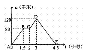 如图中的图象(折线ABCDE)描述了一汽车在某一直线上的行驶过程中,汽车离出发地的距离s(千米)和行驶时间t(小时)之间的函数关系,根据图中提供的信息,给出下列说法:①汽车共行驶了120千米;②汽车在行驶途中停留了0.5小时;③汽车在整个行驶过程中的平均速度为 千米/时;④汽车自出发后3小时至4.5小时之间行驶的速度在逐渐减少.其中正确的说法共有( )