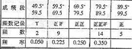数学老师按10分的组距分段,算出每个分数段学生成绩出现的频数,填入频数分页表: