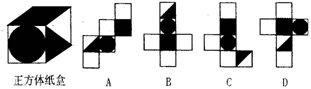 6、图中有一个正方体的纸盒,在它的三个侧面分别画有三角形、正方形和圆,现用一把剪刀沿着它的棱剪成一个平面图形,则展开图应当是 ( )