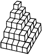 12、如图,共有五层方块,如果用同样的方法继续堆积下去,先推10层。