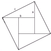 3、如上面右图是我国古代数学家赵爽所著的《勾股圆方图注》中所画的图形,它是由四个相同的直角三角形拼成的,下面关于此图形的说法正确的是( )