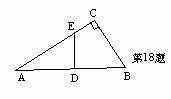 18、如图△ABC中,∠C=90°,AB=2BC,D为AB中点过点D作DE⊥AB交AC于点E,下列结论:①CE=DE;②AE=BC;③∠B=2∠A;④∠A=30°中正确个数为( )