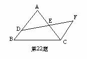 22、如图,D是AB上一点,DF交AC于点E,AE=CE,FC∥AB,求证:DE=EF。(5分)