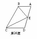 26、如图,AB∥CD,BE平分∠ABC,点E为AD中点,且BC=AB+CD,求证:CE平分∠BCD。(7分)