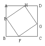 (12分)如图:在正方形ABCD中,点E、F、G、H分别在边AB、BC、CD、DA上,且AE=BF=CG=DH。(1)求证:四边形EFGH是正方形。(2)若正方形ABCD的边长是1,设AE=x,正方形EFGH的面积是S,试用含x的代数式表示S。