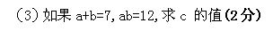 (1)它可以看作由四个边长为a、b、c的直角三角形拼成,请从面积关系出发,写出一个a、b、c的等式。(要有过程)(3分)