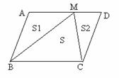 7、设M是□ABCD边上任意一点,设△ABM的面积为S1, △CDM的面积为S2,