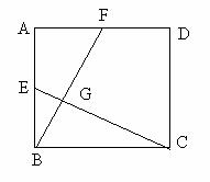 如图,已知正方形ABCD中,E、F分别为AB、DA的中点,连结CE、BF相交于点G。