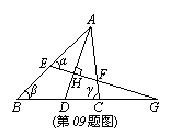 09.如图,AD平分∠BAC,EG⊥AD于H,则下列等式中成立的是( )。