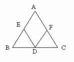 (8分)如图:已知在△ABC中,AB=AC,D为BC上任意一点,DE∥AC交AB于E,DF∥AB交AC于F,说明:DE+DF=AC