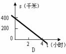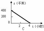 汽车由甲地驶往相距400千米的乙地,如果汽车的平均速度是100千米/时,那么汽车距乙地的路程s(千米)与行驶时间t(小时)的关系用图象表示应为 ( )