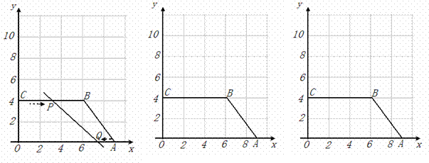 27、(12分)如图在平面直角坐标系中,已知直角梯形OABC的顶点分别是O(0,0),点A(9,0),B(6,4),C(0,4).点P从点C沿C-B-A运动,速度为每秒2个单位,点Q从A向O点运动,速度为每秒1个单位,当其中一个点到达终点时,另一个点也停止运动.两点同时出发,设运动的时间是t秒.