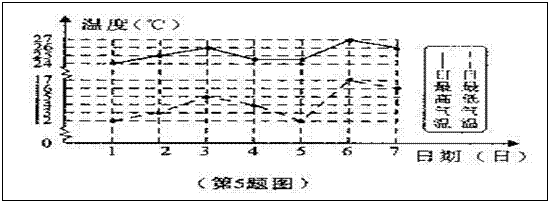 5.如图是某市5月1日至5月7日每天最高、最低气温的折线统计图,在这7天中, 日温差最大的一天是 ( )(06陕西)