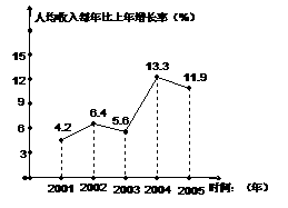 6.观察市统计局公布的“十五”时期重庆市农村居民人均 收入每年比上一年增长率的统计图,下列说法正确的是( )(06重庆)
